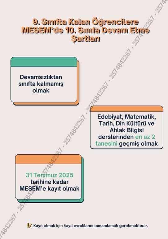 9. Sınıfta kalan öğrencilere MESEM de 10. sınıftan devam etme şartları